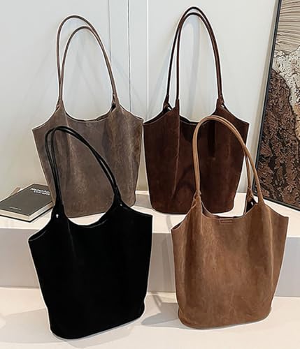 HOT ! Women’s Large Tote Bag Vintage Faux Suede Shoulder Purse Lightweight Work Bag with Detachable Pouch