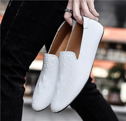 Loafers Shoes for Men Genuine Leather Pointed Toe Faux Crocodile Grain Rubber Sole Slip Resistant Lightweight Comfortable Prom Slip-ons 7