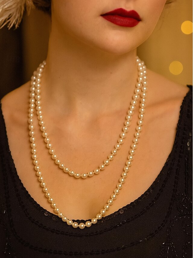 $9.99 - Women's Long Faux Pearl Necklace - 1920s Flapper Style Layered Jewelry for Gatsby Parties and Vintage Themed Events 2025. Shop for cheap Women's Necklace online? Buy at lightinthebox.com on sale today!