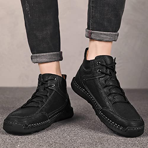 2022 New Large Size Border Handmade Retro Stitched Leather Comfortable Casual Shoes Tan Mens Casual Shoes (Black, 11.5) 7