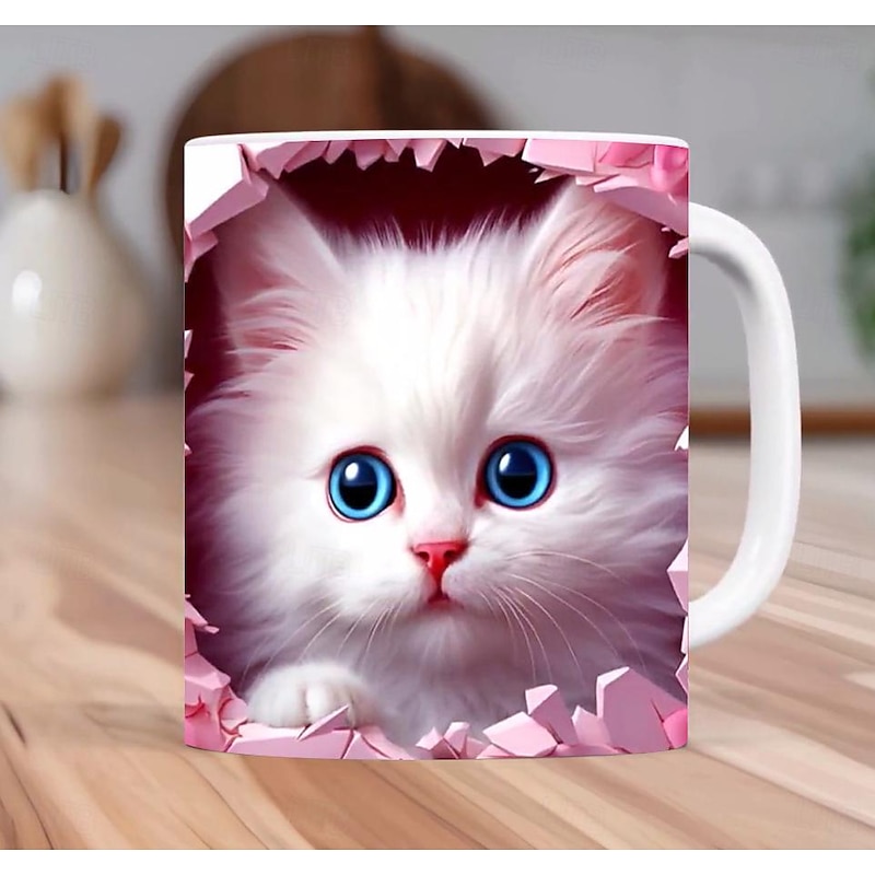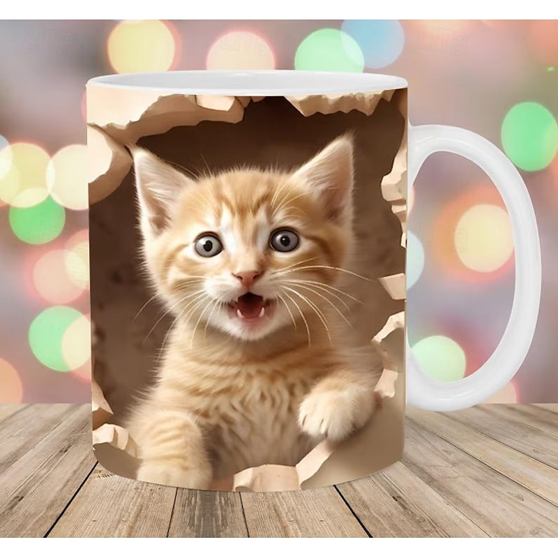 HOT ! 3D Print Kittens Hole In A Wall Mug, Ceramic Coffee Cat Mug 3D Novelty Cat Mugs Cat Lovers Coffee Mug Cat Club Cup White Ceramic Mug Gifts For Men Women