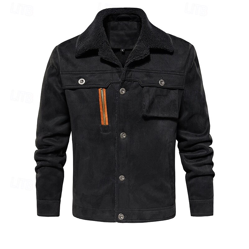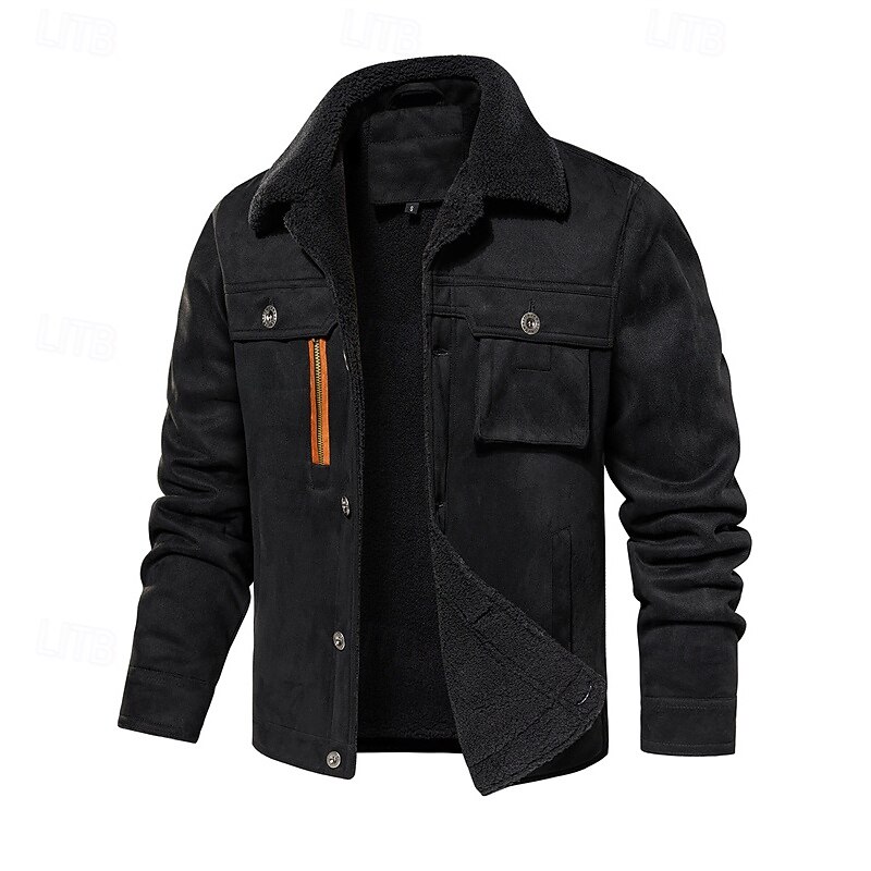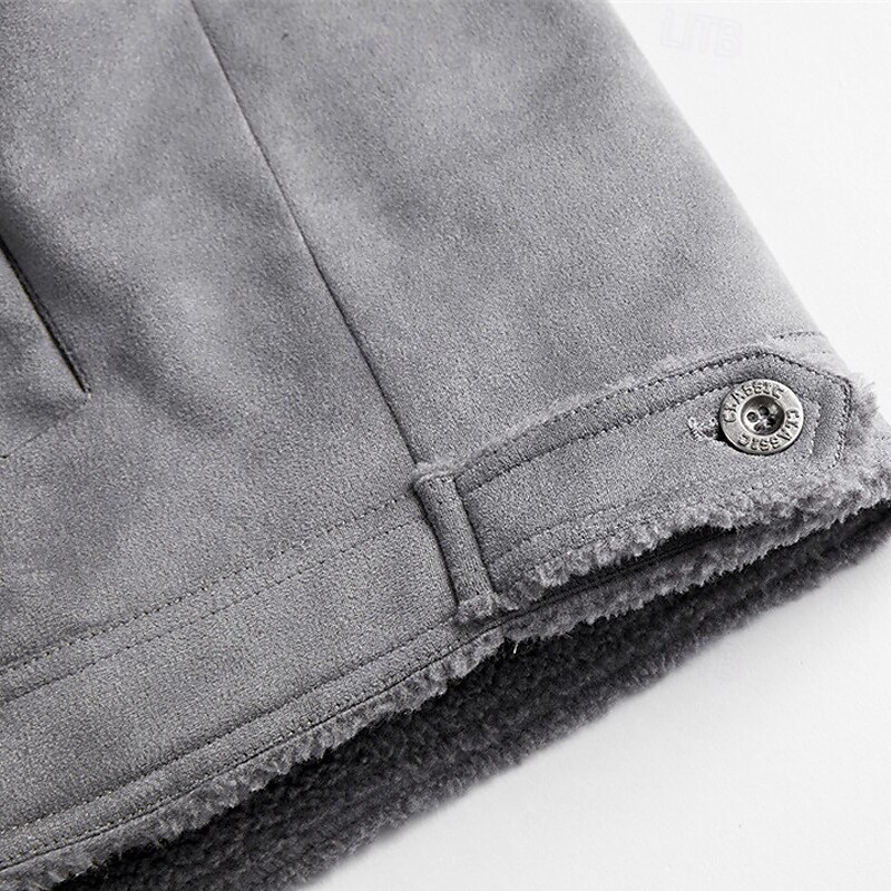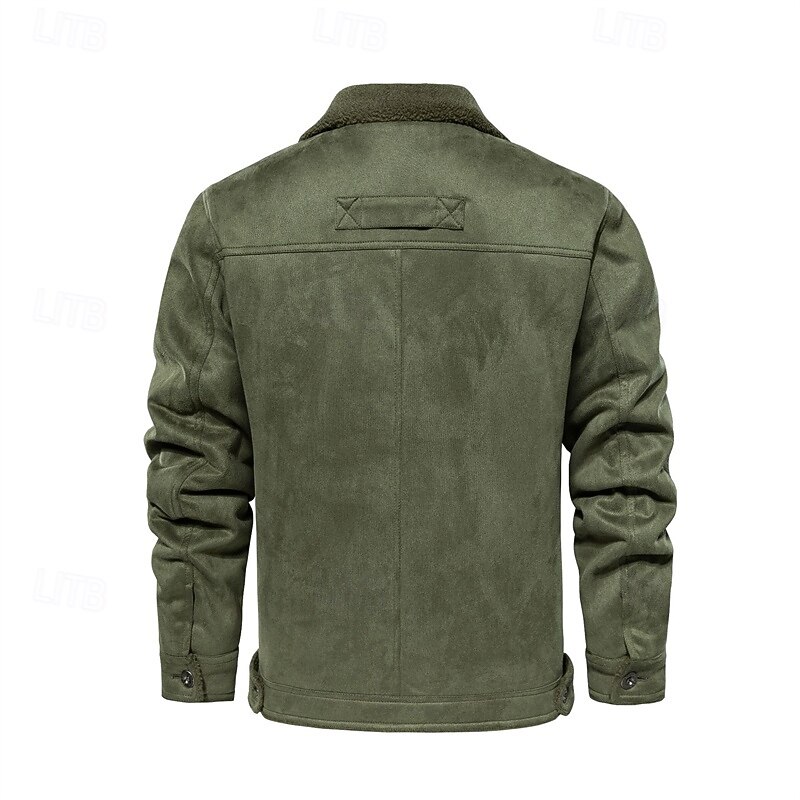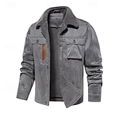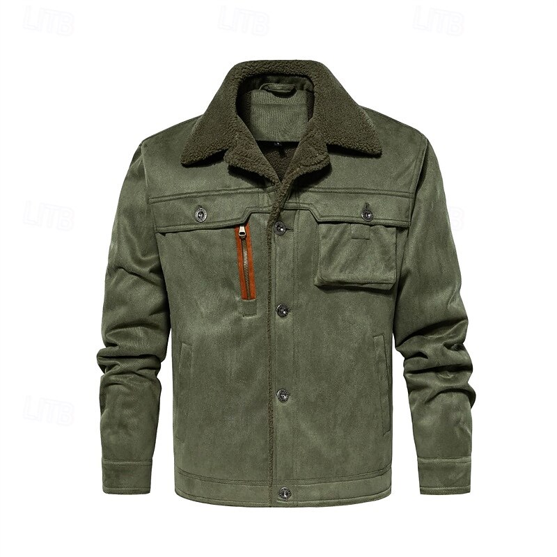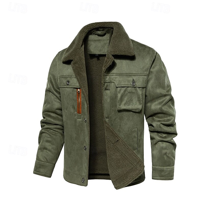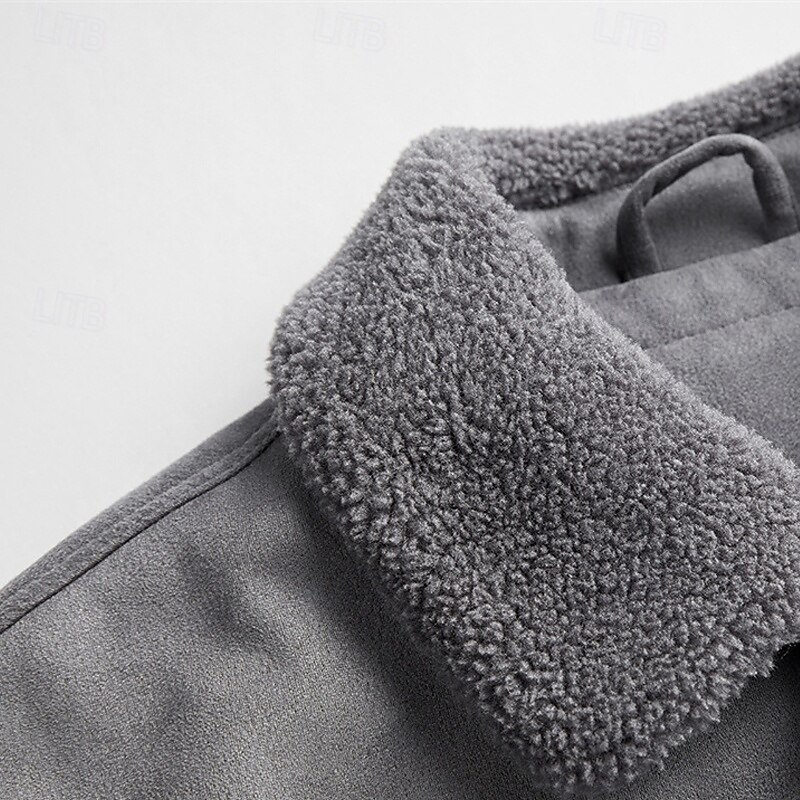 More information about Men's Faux Suede Jacket Winter Jacket Fleece Jacket Cargo Jacket Vacation Daily Thermal Warm Pocket Fleece Fall Winter Plain Fashion Streetwear Lapel Regular Black Army Green Gray Jacket