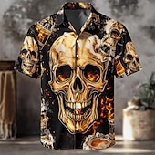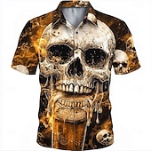 More information about Men's 3D Oktoberfest Beer Skulls Shirt Summer Shirt Button Up Shirt Short Sleeve Vintage Retro Outdoor Holiday Summer Spring Turndown 3D Print Collared Shirts Black 1 Black Orange