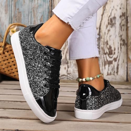 • Wide Toe Box: The spacious wide-toe design ensures all-day comfort while the lightweight upper keeps your feet cool and dry, perfect for long walks or everyday wear,womens glitter sneakers