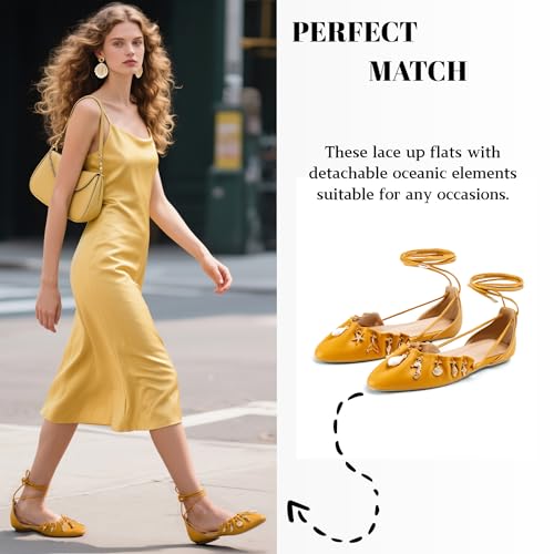 • Unique design: These lace up ballerina flats sandals come with DETACHABLE embellishments such as shells, fishes and other oceanic accents. You can remove the elements when you would like change s style.