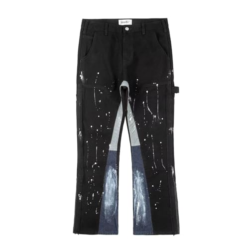HOT ! Color Match Ink Painted Baggy Jeans for Men Y2k Straight Denim Cargo Pants