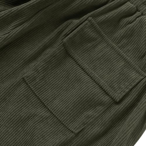 Men's Corduroy Cargo Pants - Relaxed Fit Drawstring Waist, Vintage Textured Multi-Pocket Trousers for Casual 5