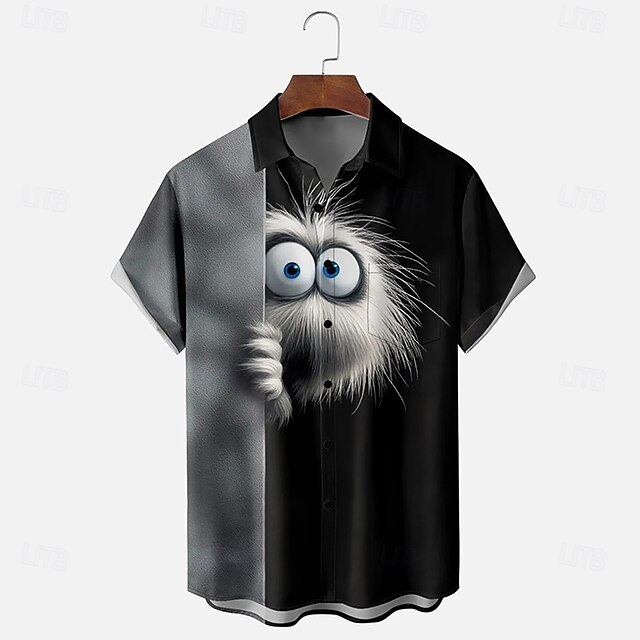 More information about Men's Animal Patterned Color-blocking Shirt Button Up Shirt Short Sleeve Funny Outdoor Vacation Summer Spring Turndown 3D Print Collared Shirts Front One Pocket Black