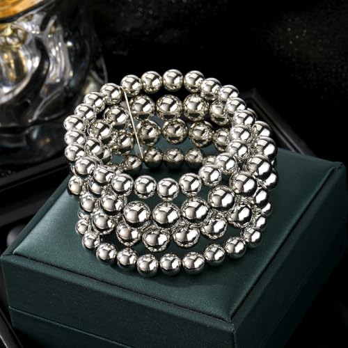 Chunky Beaded Bracelets for Women 14K Gold Plated Stackable Beaded Bracelet Stack Adjustable Large 8MM/10MM Ball Bracelet Set Hip Hop Jewelry Gifts 1