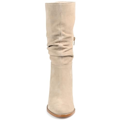 Journee Collection Signature Womens Genuine Leather Syrinn Slouch Suede Mid Calf Boots Padded Stacked Wood Heel Almond Toe 6