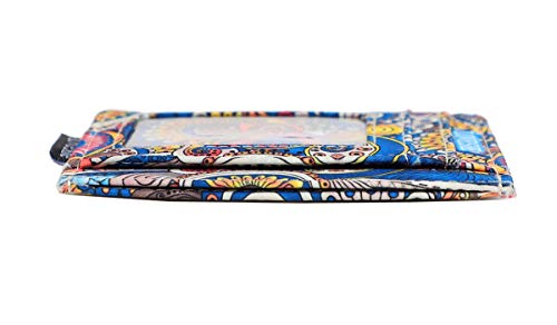 • The outer material is a durable Polyester type material. There is plenty of room for cards and cash on the snap side. The zippered side easily holds you iPhone7 plus and there is a zippered change purse in there as well.Really beautiful design an bright colors.Absolutely love love this Bright ,vibrant ,colorful and unique wallet!!!