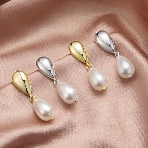 HOT ! MUNDELL 14K Gold Plated Solid 925 Sterling Silver Post Pearl Dangle Earrings | Dainty Hypoallergenic Teardrop Stud Earring for Women Fine Jewelry