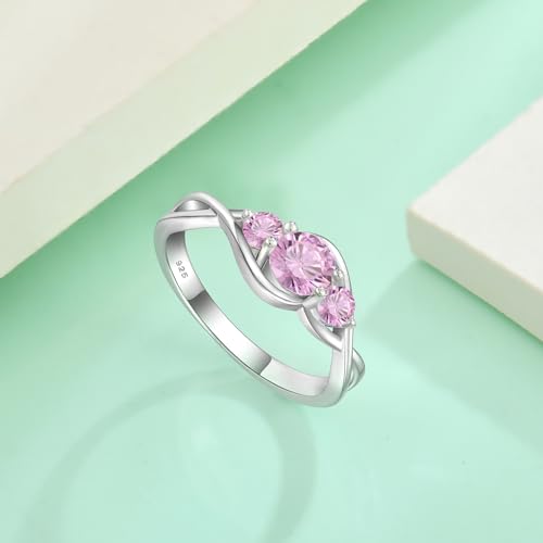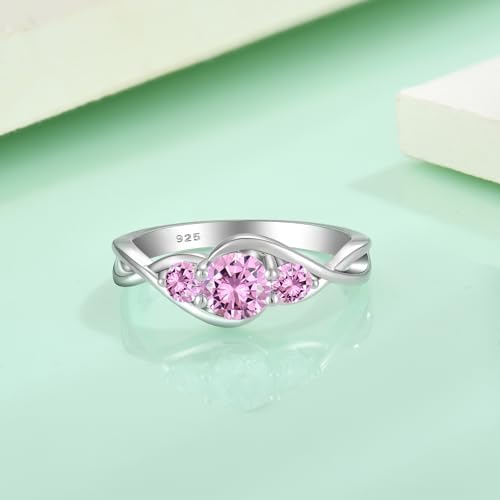 STARCHENIE 3-Stone Pink Promise Ring for her 925 Sterling Silver Infinity Wedding Engagement Birthstone Ring for Women Size 10 5