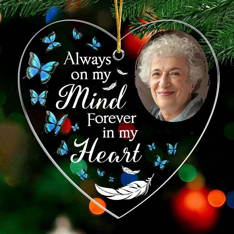 Highlights 【Cherished Remembrance】 Personalized memorial ornaments beautifully commemorate your loved ones who have passed away, allowing you to keep their memory close to your heart. These thoughtful ornaments serve as a touching tribute, ensuring your loved ones are remembered during the holiday season. 【Customizable Photo Options】 Each ornament can be customized with a cherished photo of your loved one. This personalization adds a unique touch, transforming each ornament into a one-of-a-kind keepsake that reflects the joy and happy times you shared together. 【Versatile Décor】 Whether hung on your Christmas tree, displayed on a mantel, or placed in a window, these memorial ornaments are perfect for any setting. They not only enhance your holiday decor but also serve as a constant reminder of the beautiful memories you hold dear. 【Thoughtful Gift for Grieving Hearts】 Show your support and sympathy to someone who has lost a loved one by gifting them a personalized memorial ornament. This heartfelt gesture conveys your care and compassion, helping them honor their loved one’s memory while celebrating their life. 【Touching Expressions of Love】 More than just ornaments, these personalized memorial photo ornaments are expressions of love and grief. Choose a design that resonates with your loved one’s personality or interests, making it a truly meaningful gift that will touch their heart and soul during the Christmas season.