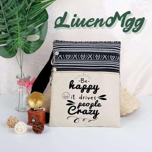 Be Happy Messenger Bag Small Ethnic Pattern Printed Adjustable Strap Crossbody Zipper Bag Phone Bag Wallet Cute Shoulder Handbag Inspirational Present for Women 7