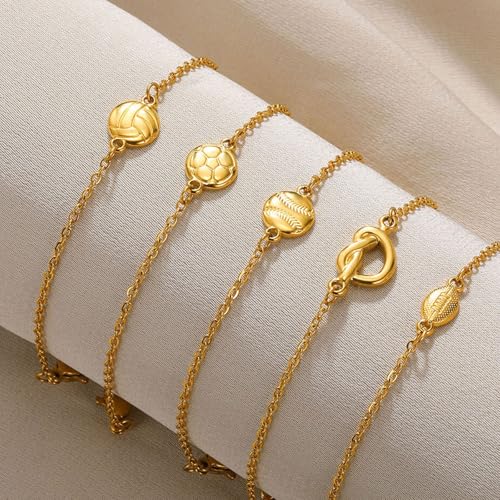 Gold Soccer Volleyball Bracelet for Women Men Sports Ball Bracelet Sport Theme Jewelry Gift for Team Athlete Coach Volleyball Football Lovers 5
