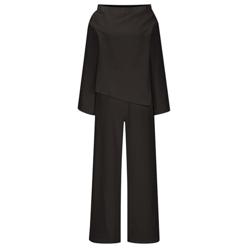 HOT ! HGps8w Women's Dressy Satin 2 Piece Outfits Off The Shoulder Long Sleeve Blouses Fall Loose Business Going Out Pants Suits