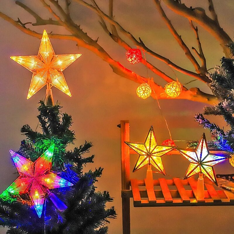 Christmas Tree Decor Star Lights Pentagram Pendant Colorful LED Tree Top Lights Xmas New Year Party Trinkets Home Decoration 16