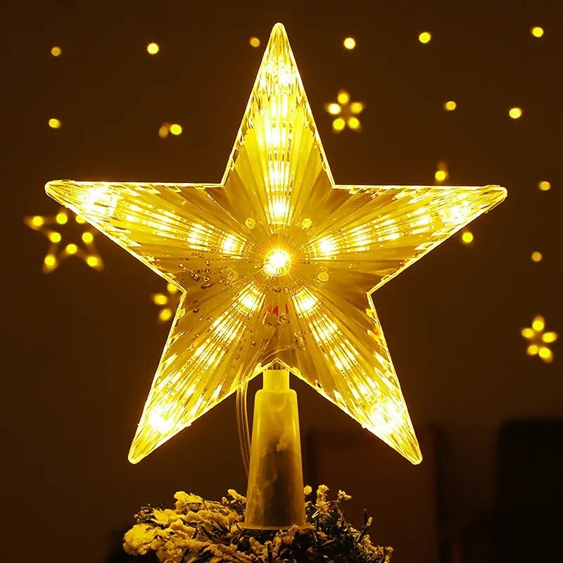 Christmas Tree Decor Star Lights Pentagram Pendant Colorful LED Tree Top Lights Xmas New Year Party Trinkets Home Decoration 12