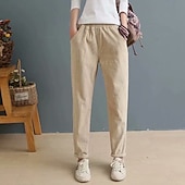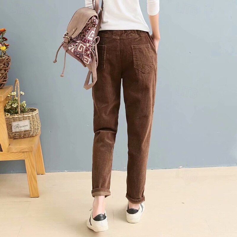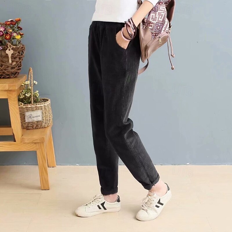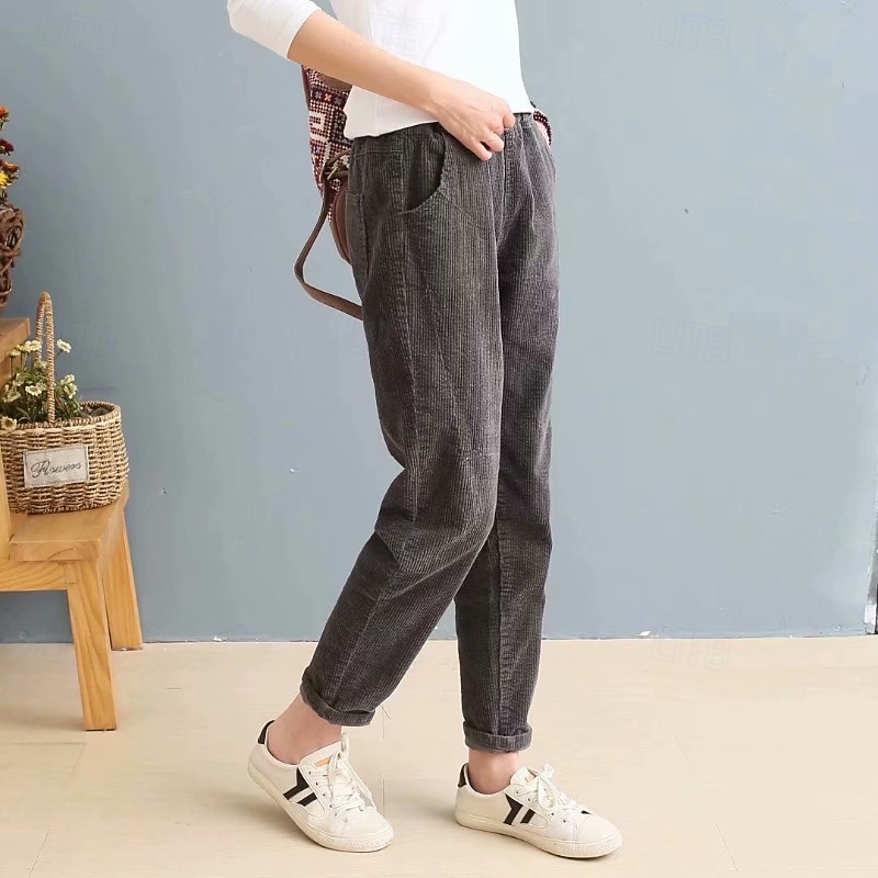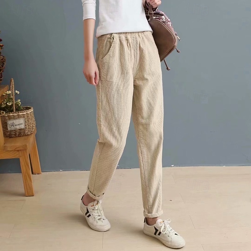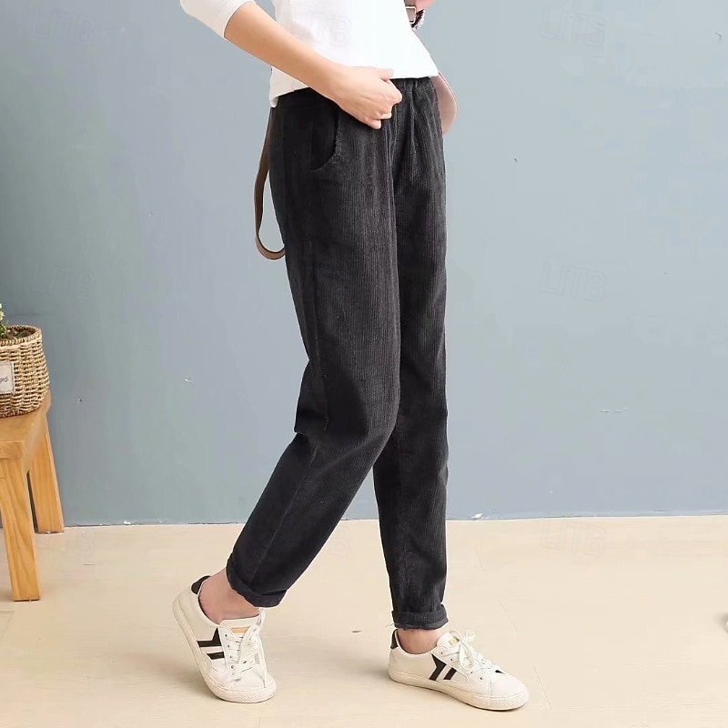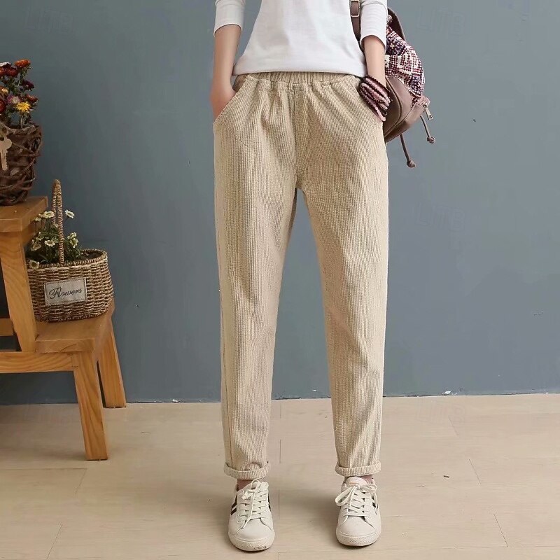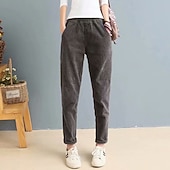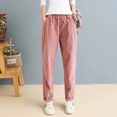 More information about Women's Corduroy Pants Slacks Straight Streetwear Casual Full Length Natural Plain Pocket Elastic Waist Comfy Holiday Weekend Apricot Grey Black Pink Fall Regular Fit