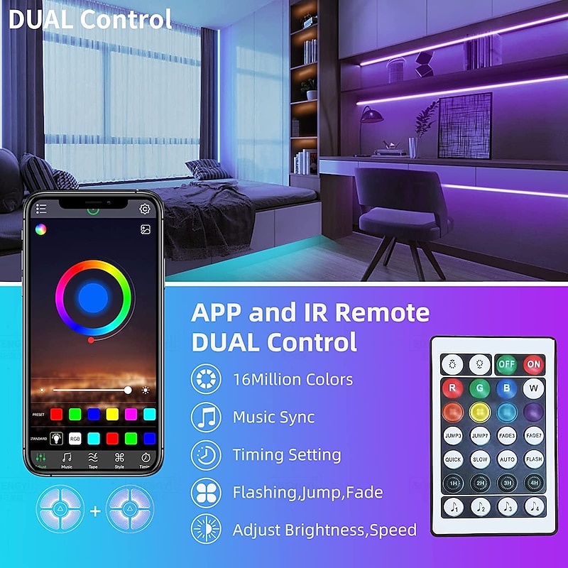 $19.99 - LED Light Strip 15m/20m 50ft 65.6ft RGB Color Change LED Light Strip Kit with IR44 Key Remote Control for Bedroom Lighting Flexible Home Decoration 2025. Shop for cheap Remote Control online? Buy at lightinthebox.com on sale today!