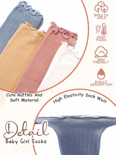 More information about Formery Baby Girls Boys Knee High Socks Ruffled Baby Long Sock Cotton Solid Color Frilly Infant Stockings for 0-12 Months (4-Pairs)