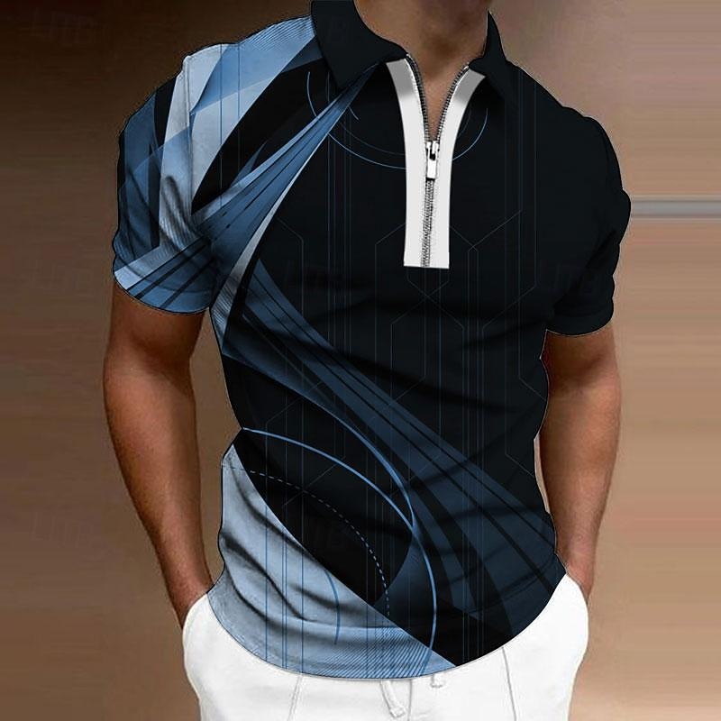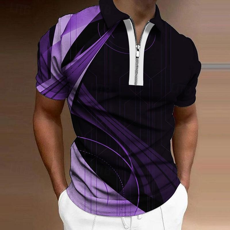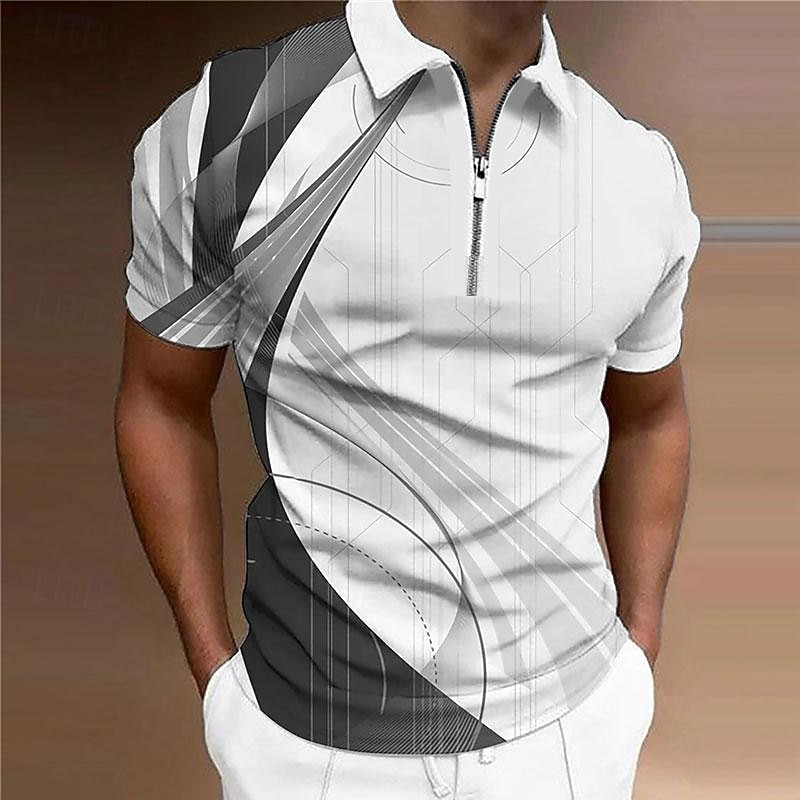 Men's Geometric Zip Polo Shirts Golf Shirt Short Sleeve Polo Shirts Collared Shirts Business Casual Vacation Wear Formal Wear Festival Wear 3D Print Quarter Zip Polo Yellow Army Green Red