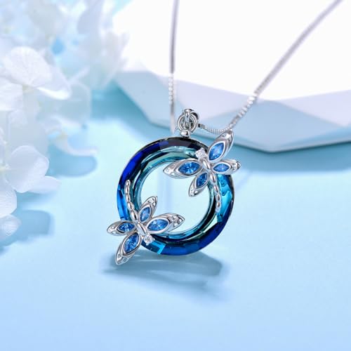 Dragonfly Crystal Necklace for Women 925 Sterling Silver Animal Blue Circle Crystal Pendant Birthday Jewelry Gifts for Daughter 5