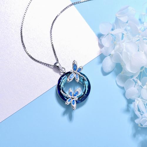 Dragonfly Crystal Necklace for Women 925 Sterling Silver Animal Blue Circle Crystal Pendant Birthday Jewelry Gifts for Daughter 7