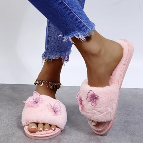 Butterfly Plush Slippers for Women Fluffy Slippers Slip-On Plush Shoes for Home Wear Open Toe Winter Funny Adult 6