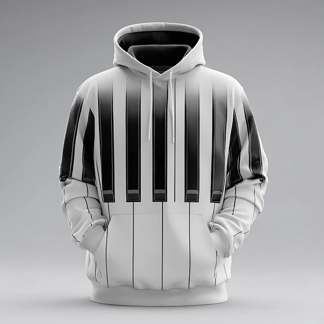 HOT ! Men's Optical Illusion Pano Keys Hoodie Sweatshirt Fashion Cool Crew Neck Home Party Streetwear White Brown Drawstring Fall Winter Designer