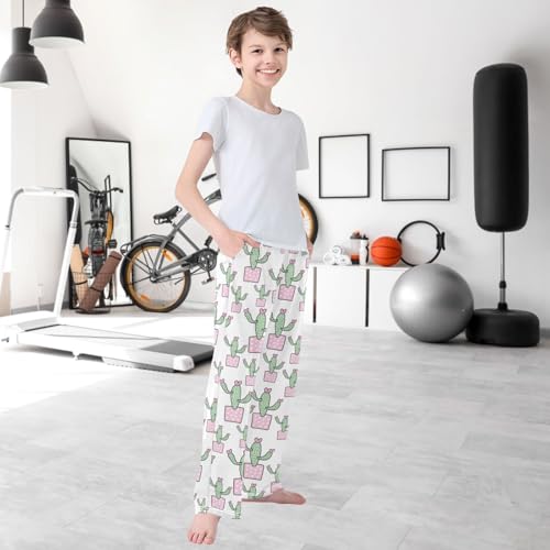 HOT ! Boy's Lounge Pants Cactus Flower Heart Pink Pot Kids Jogger Pants Elastic Waist Long Bottoms with Pockets 6-14 Years