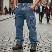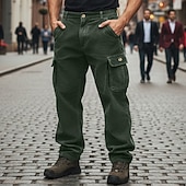 More information about Men's Cargo Pants Trousers Corduroy Pants Baggy Pants Casual Pants Elastic Waist Multi Pocket Straight Leg Solid Color Comfort Full Length Outdoor Casual Daily Fashion Streetwear Blue 1# Black