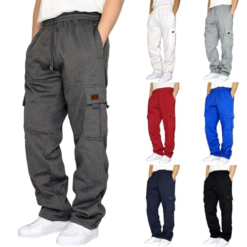 HOT ! Men's Cargo Sweatpants Casual Fleece Joggers Loose Fit Open Bottom Fleece Hiking Jogger Cargo Sweatpants for Men with Pockets