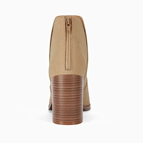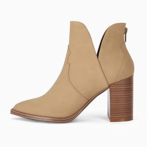 Coutgo Womens Cutout Ankle Boots Pointed Toe Chunky Heel Booties Back Zipper Slip on Western Boot Shoes 6