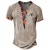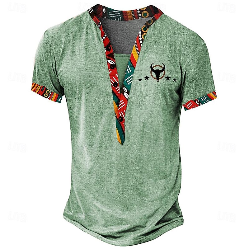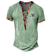 More information about Men's Graphic Tribal Henley Shirt Short Sleeve 3D Print Fashion Designer Basic Daily Summer Yellow Green Gray Stand Collar Henley T-Shirt