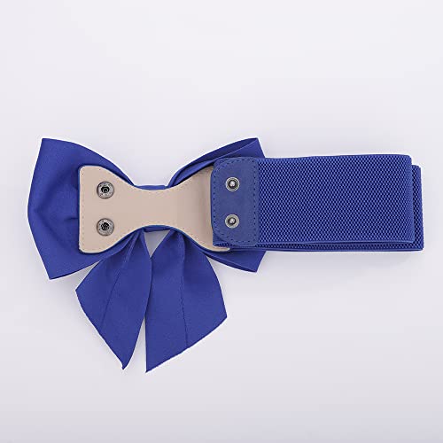 Wiwpar Women's Fashionable Elastic Bowknot Wide Waist Belt Lady Stretch Cinch Belts for Dress Vintage Stretchy Wide Bow Knot Waistband Cinch Belts (Blue) 5