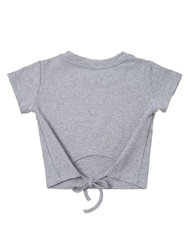 Linjinx Kids Girls Round Neck Bowknot Printed Tee Crop Tops Summer Casual Short Sleeve Lace-Up Cutout Back T Shirt 7
