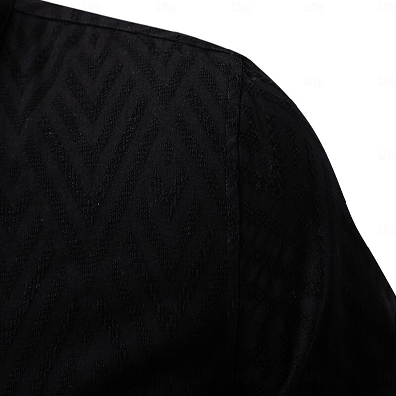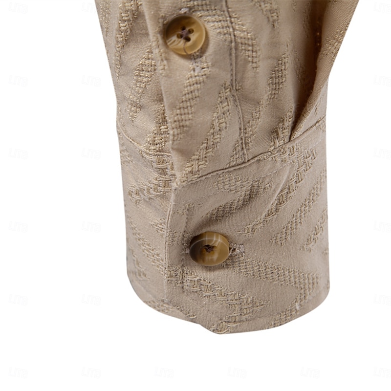 Men's Shirt Black White khaki Long Sleeve Solid Color Standing Collar Outdoor Causal Buttons Clothing Apparel Daily Casual Daily Leisure 6