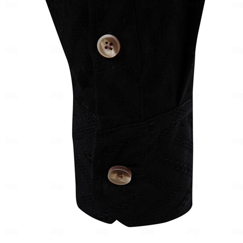 Men's Shirt Black White khaki Long Sleeve Solid Color Standing Collar Outdoor Causal Buttons Clothing Apparel Daily Casual Daily Leisure 12
