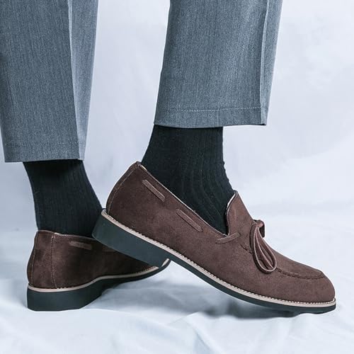HOT ! Men's Suede Bow Low Block Heel Business Dress Loafers Classic Comfortable Tassels Slip On Casual Chunky Heel Loafers for Driving Party Work