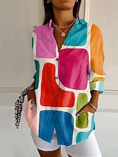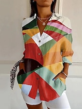 More information about Women's Shirt Graphic Geometric Stylish Modern Casual Long Sleeve Bishop Sleeve Shirt Collar Regular Tops Daily Holiday Print Black Purple Orange Fall Winter