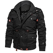 More information about Men's Winter Jacket Winter Coat Work Jacket Street Causal Warm Vintage Style Fall Winter Solid Color Cotton ArmyGreen Black khaki Jacket