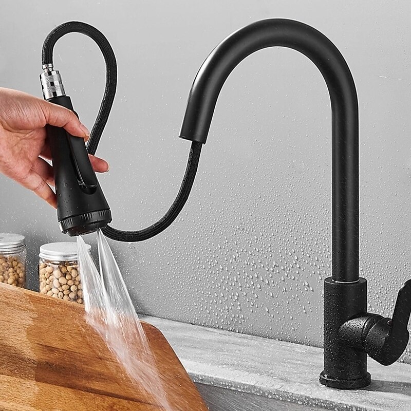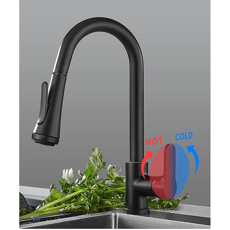 More information about Kitchen Faucet with Sprayer,Matte Black Brass 4-Function Single Handle One Hole Button Design Pull-out / Pull-down Centerset Contemporary Kitchen Taps(with Soap Dispenser)