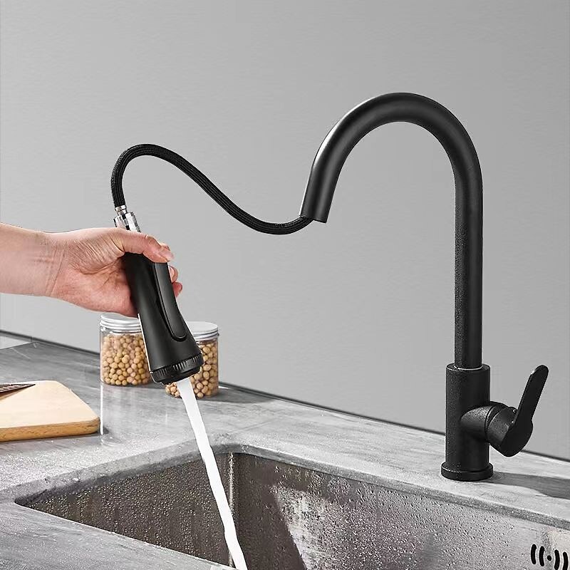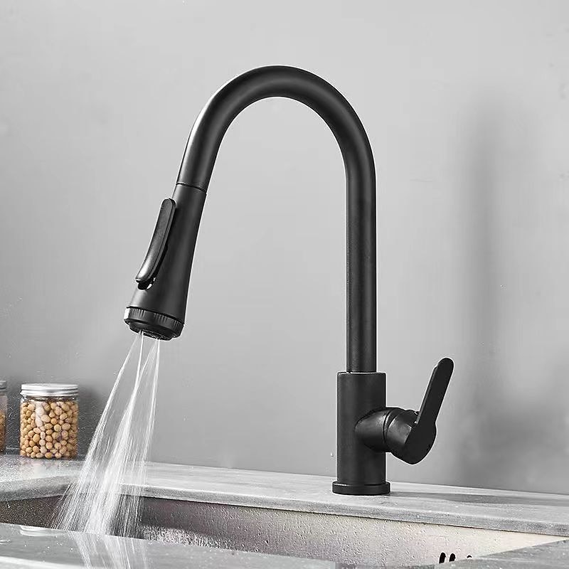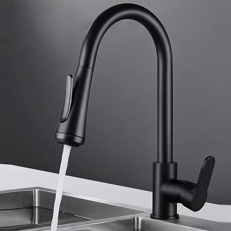 HOT ! Kitchen Faucet with Sprayer,Matte Black Brass 4-Function Single Handle One Hole Button Design Pull-out / Pull-down Centerset Contemporary Kitchen Taps(with Soap Dispenser)