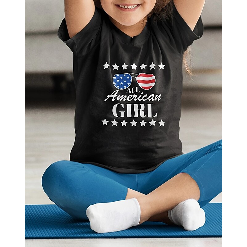 More information about 100% Cotton American Independence Day Kids Girls' Black White USA T shirt Tee Crew Neck Short Sleeve Outdoor Vacation Daily Classic Casual Print Summer
