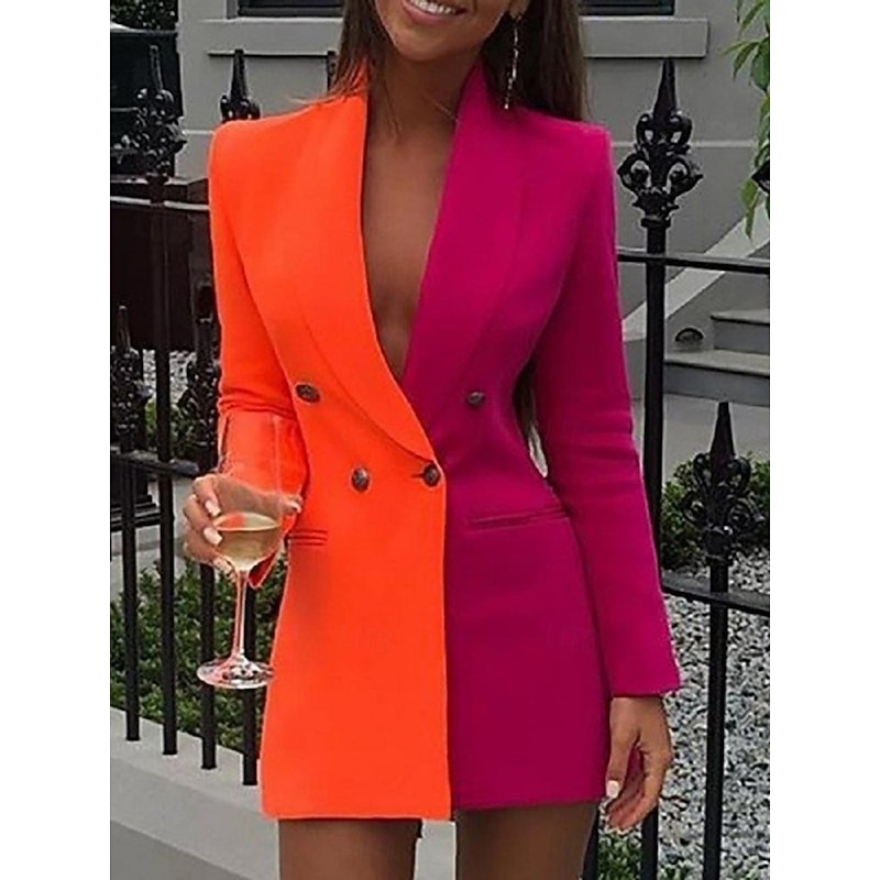 More information about Women's Blazer Comfortable Breathable Pocket Casual Plain Formal Office Street Casual Double Breasted Long Turndown Regular Fit Long Sleeve Outerwear Black Yellow Red Summer Spring