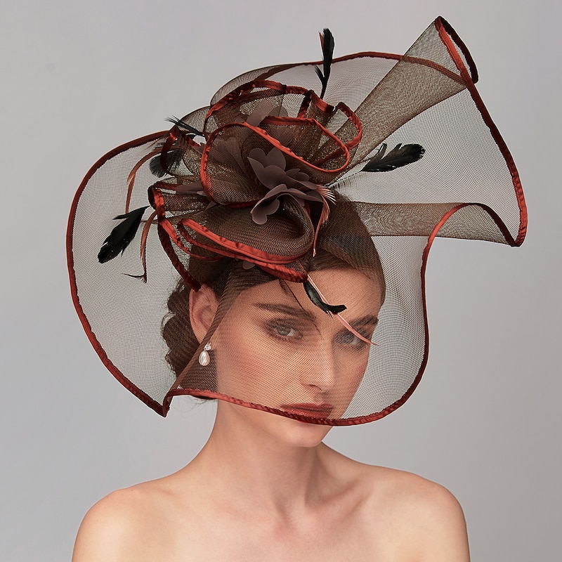 Elegant & Luxurious Feather Linen Rayon Kentucky Hat Fascinators Headpiece with Feather Floral Flower 1PC Melbourne Cup Wedding Horse Race Ladies Day Headpiece dress Race Day Dress 18