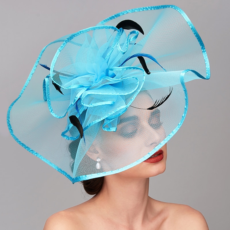 Elegant & Luxurious Feather Linen Rayon Kentucky Hat Fascinators Headpiece with Feather Floral Flower 1PC Melbourne Cup Wedding Horse Race Ladies Day Headpiece dress Race Day Dress 12