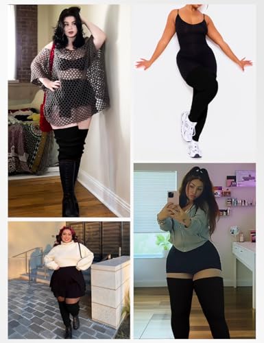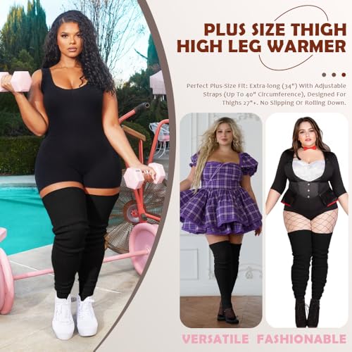 • 💕Plus size thigh high stirrup leg warmer for big girl and ladies; Stockings are about 34'' (86cm) long, and the stretched width is up to 29”~36" circumference. Suggest for For upper thighs 27"+ legs Come with Tight Straps & Adjustable buckles, up to 40'' circumference, it secures the leg warmers to adjusted size till you re-adjust it. (You can also use it on your other tights or socks as well). No sticky adhesive, no droopy, no roll down.
